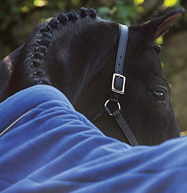 Ein besonderes Highlight der Abschwitzdecke ist der wattierte Fleecekragen. Neben seiner Funktion, Mähnenkamm und Widerrist zu schonen und den Tragekomfort zu erhöhen, setzt der Fleecekragen auch einen optischen Akzent. Der beige abgesetzte Deckenrand und die Abnäher im Rückenbereich vervollständigen das gelungene Design der Decke.