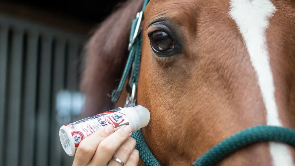 Power Phase Roll On mit besonders hohem Gehalt an aktivem Wirkstoff schützt das Pferd vor Stechmücken, Bremsen, Fliegen und Zecken, auch wenn es schwitzt.