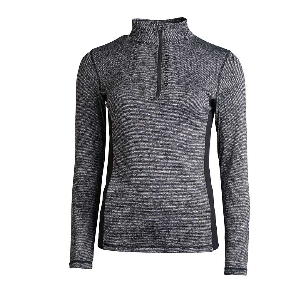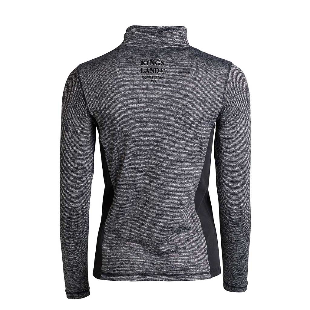 Mit langen Ärmeln, 1/2 Reißverschluss vorne und einem Kragen. Aus einem ultra weichen und atmungsaktiven Melange-Stoff. Seitliche Einsätze in Schwarz für eine schmeichelhafte Passform und bester Bewegungsfreiheit beim reiten. Schicker Logodruck entlang des Reißverschlusses vorne und unterhalb des Kragens hinten. Der Logodruck hat einen glänzenden schwarzen Effekt, der dem Shirt einen extra stylishen Look verleiht.