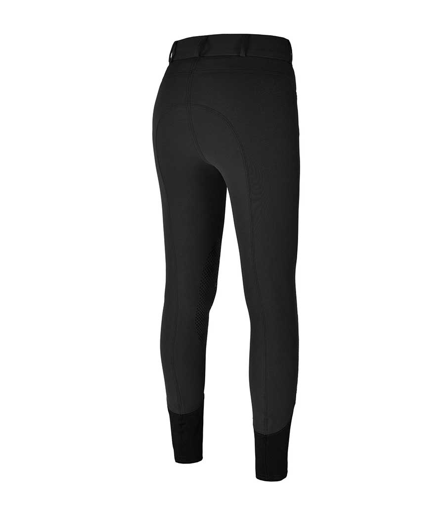 Damenreithose mit Knie-Grip, mit zwei Knöpfen vorne und breitem Bund mit optimalem Komfort. 4-Wege-Stretch, wasserabweisend, atmungsaktiv und staubabweisend. Unteres Wadenbein aus Lycra für mehr Komfort. Paspelierung entlang des Taschenrandes.Stickerei unterhalb der Fronttasche. Firmenaufnäher im Bereich des linken Oberschenkels.